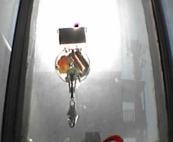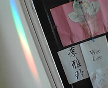 ![]() ![]() ![]() ![]() I'm finally at home during daylight hours to see the solar powered RainbowMaker catching the sunlight in our baby's room. Direct sunlight coming through a southern-facing window hits a small solar cell which creates electricity to turn a motor. A train of small plastic gears steps down the speed to a shaft that turns a Swarovski crystal. The crystal refracts more of the sunlight to fill the room with moving fragments of rainbows. The baby is fascinated by the light show and I hear cats love it too. - mike lee - baltimore |