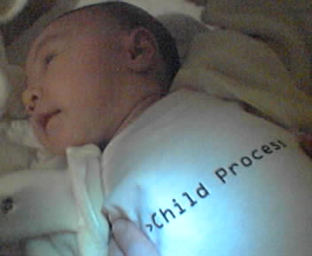 Baby is in her ThinkGeek Child Process creeper. She is cuter than a single-pixel gif indeed! - mike lee - |