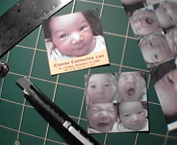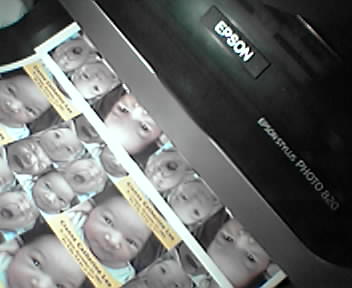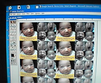 ![]() ![]() ![]() ![]() I just took phonecam pix of our baby from here, here, and here, adjusted color slightly in Adobe Photoshop, and laid them out in Illustrator to print as refridgerator magnets! The layout was printed to a cheapo Epson Stylus Photo 820 onto Xerox Color Inkjet Magnets sheets. These sheets are flexible magnetic substrate covered with a glossy inkjet paper. The Xerox sheets come four to a pack for about $11.00 at Staples. When printed, the sheets are cut with scissors or a knife. The finished 2x2" magnets look great and will be a holiday hit with our families. Who says low-rez phonecam images suck? - mike lee - making martha proud |