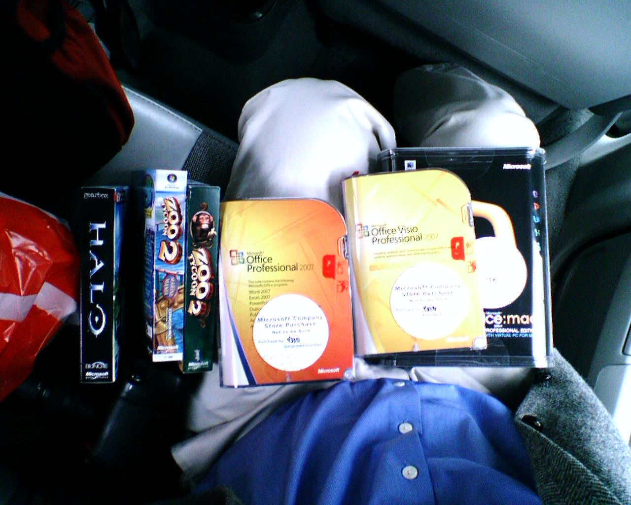 ![]() ![]() ![]() ![]() ![]() ![]() ![]() ![]() My Microsoft staff host Pam met me at building 27 and we drove across campus to #100. Along the way, she gave me a tour of some the significant buildings. Pictured is Bill & Steve's office, provisional housing condos for visiting consultants and field staff, the Company Store where Pam helped me buy some software and lunch at Microsoft Dining Services. On my lap is the amount of software $244.88 buys at an employee discount. My talk went well and had an OK turnout considering it was at the end of the day on a Friday. They had a taxi waiting for me right after I finished and I saw today's rain on the way back downtown. I chill tonight to take an early flight home in the morning. - mike lee - redmond, wa |
