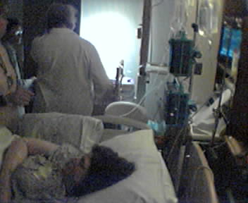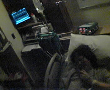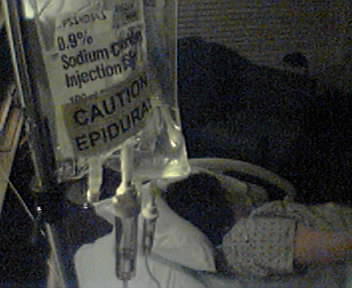 ![]() ![]() ![]() At around 1:45am, the anesthesiologist came in at Amy's request to administer the epidural, which is essentially a needle embedded partway into the spine to allow an initial drug injection and then a steady saline solution drip. I think they will apply another dose in a couple hours. The contraction pains have gone away, and she's much more comfortable. The last two photos are of the big, bright robo-light that was deployed from the ceiling for catheter insertion, and will be used again for the birth. It's very, very quiet in the room now and Amy's sleeping. Maybe I can snag a nap now too. |