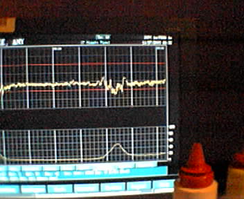 ![]() ![]() ![]() ![]() We've been watching a data dance between the top graph line of the heartbeat, and the bottom graph line showing the contractions. In the first photo, the heartbeat was dropping too low during contractions, so they turned off the inducing drug and put Amy on oxygen (mom gets more air, so does baby). The team believes that since the baby is still high up in the pelvis, the contractions are causing the umbilical cord to kink in a way that affects the heartbeat. So the nurse has set up another IV to pump amniotic fluid back into the uterus, which has been drying out since the original water broke and drained. This is all such a wet process! As you can see in the last frame, within minutes of pumping the fluid back in, the kid's heart rate stabilized against the contractions. The bathtub's comfy again. |