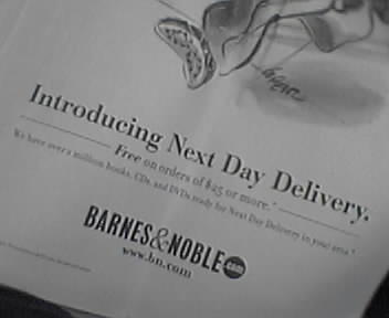 ![]() ![]() ![]() I just saw this full page ad in The Baltimore Sun announcing overnight delivery of books and DVDs in the mid-Atlantic. If you order by 11am on a weekday, they will have the goods to you before 7pm the next day, and shipping is free if the order is over $25. The service is available in all of Maryland state and Washington, D.C. Check the web site for more locations. Faster Delivery is an extension of Same Day Delivery, which has been available in Manhattan for some time. When I was living there in a hotel, I loved being able to order books on my Sidekick in the morning to have them appear automagically on my nightstand when I returned to my room. Even though I walk past a BN at Washington's Union Station in the mornings now, it'll be fun to place an order on the train for next evening arrival at home in Baltimore. - mike lee - |