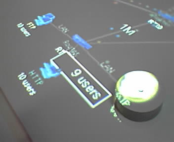 Well, I only made it through about 10% of the Media Lab demos in a couple hours. There's just an amazing array of cutting edge investigations. Good thing my new employer is a sponsor of the lab and can get access any time. I also had a nice demo from Roz Picard on software agents for affective computing. For you DJs, here are some photos of Audiopad, an amazing tangible interface for composing music. The first three photos are of the system in action in the auditorium, and the other pics are of the first commercial prototype of the user interface and display system in the form of an IP Network Design Tool by NTT Comwave. NTT wants $80,000 for their tool--being on the bleeding edge is not cheap. The conference co-organizer, Professor John Maeda, noticed my Color Sidekick and whipped his out. He got his from Danger's CEO, who is a friend. - mike lee - cambridge, ma |