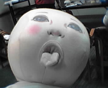 This is the face of the demo doll used in the breastfeeding class my wife and I attended tonight. I had to stifle a snicker when the instructor pulled the tongue out. But overall it was an informative class; my head hurts from all the technical information. Breast pumps, auxilliary nipples--oh my! - mike lee - |