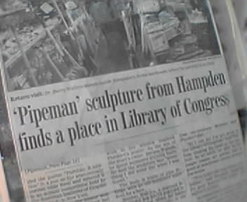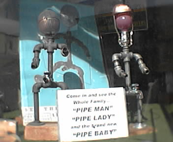 ![]() ![]() ![]() ![]() When you enter Sirkis Hardware on Falls Road in Hampden area of Baltimore you can't help but notice the pipe people figures in the window. Made by the young son of the former owner of the shop over 40 years ago, the original Pipeman became a bit of a celebrity a few years ago. A local illustrator named Dave Plunkert used a photo of Pipeman as the primary subject in his submission to a poster contest in 1997. The poster won, and actually became part of the permanent collection of the Library of Congress a year later. Store staffer Carle Klupt, shown here lighting the pipe people for me, has created Pipe Woman and even Pipe Baby! - mike lee - baltimore |