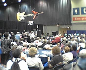 ![]() ![]() ![]() Here's something you don't see every day: a sea of seniors gettin' down on some rock 'n roll--complete with mosh pit. This is the AARP Performance Stage in the Exhibit Hall at the Lakeside pavillion. I'm here to meet wife for dinner. She's been working the web site exhibit booth all day. We're off to dinner in Chinatown and then BLUE MAN! - mike lee - |