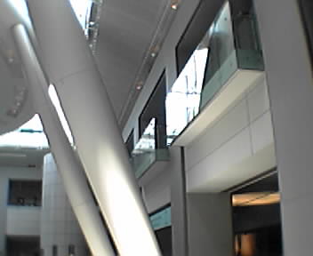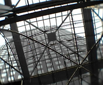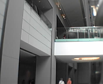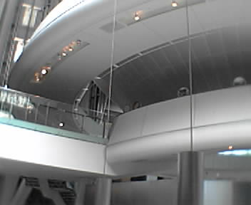 The 87 foot diameter sphere of the Hayden Planetarium is an awe inspiring sight. A model of the Solar System hovers around the top of the sphere, which is boxed-in by a glass-covered metal structure. The base of the sphere is surrounded by a spiral walkway along which you can learn about the scale of the Universe. Inside, the space show I saw today was Harrison Ford narrating "The Search for Life in the Universe." I was a little disappointed that they didn't use the star projector. - mike lee - new york city |