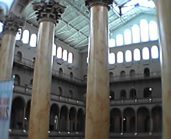 ![]() ![]() ![]() ![]() ![]() ![]() ![]() ![]() ![]() ![]() ![]() ![]() Revisiting my mobile mosaic technique from last October's visit to the Smithsonian Arts & Industries Building, I just made this superwide composite of The Great Hall of The National Building Museum. The Great Hall is at the core of the museum, which is housed in the former United States Pension Bureau. Completed in 1887, the building contains "an innovative system of windows, ducts, and open archways ... designed to keep the building's Great Hall--approximately the size of a football field--well-ventilated and glimmering with natural light." Building facts from the visitors' brochure: