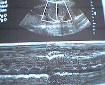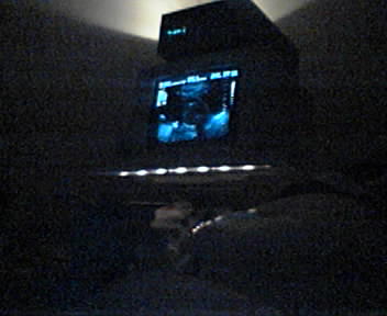 ![]() ![]() ![]() ![]() I e-mailed these photos of this afternoon's shapely clouds to wife and got these descriptions (in order): "A choo-choo and a really overweight crab. Hmmm ... a hard one. I see a flea jumping away from me and a surfer girl riding on the back of a massive wide-mouth bass. Yes. I know I'm weird. It's part of my charm." - mike lee - baltimore P.S. Bustagroove: I took photos off the monitor behind the tech. I snapped away until she ordered me to stop. I'll have much better than these photos and the cheesy dye sub prints we got as I almost have wife talked into a trip to Baby Insight or Fetal Photo ... |