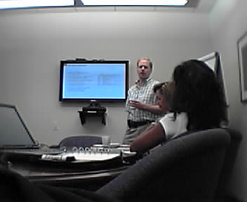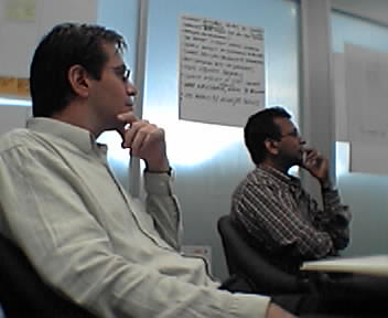 Knowledge about large-scale technology activities is transferred from one smart person to another via markings and gestures on a whiteboard. Diagrams rule! - mike lee - new york |