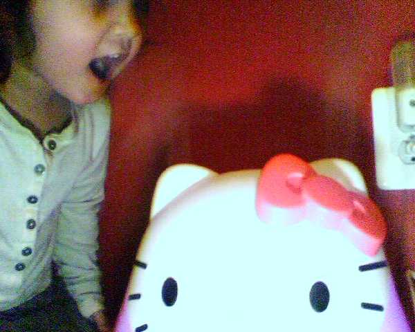 ![]() ![]() ![]() ![]() On my way home from my early exit from jury duty, I stopped into Bed, Bath and Beyond to see what was out for their storewide clearance sale. While it wasn't on sale, I couldn't resist picking up the adorable Crane Hello Kitty Humidifier (with built-in nightlight!). Pix here show Cianna enjoying the water mist. I love how the mist shoots upward in two plumes from kitty's ears. So I couldn't resist adding two pieces of black gaffer tape to kitty's face to make ... Steaming Mad Kitty! - mike lee - wheaton, md |