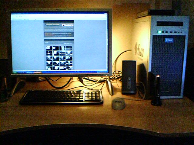 ![]() ![]() ![]() ![]() ![]() ![]() ![]() ![]() We took the new car out for a tour on Saturday ending up at Oxon Hill Farm, which is right at where the eastern DC beltway cuts across the Potomac River south of the city. This place is an actual operating farm maintained by the park service. Cianna had a great time seeing horses, chickens, pigs and sheep in the record breaking 73 degree weather. On the way home, we stopped at Marie's Bakery in Rockville where I was reminded that this will be the year of the pig. Chinese new year is Sunday, February 18th. Sunday, we had brunch at the Wheaton IHOP for the first time. Cianna always yells out "IHOP" when we drive by. Pictured here are the confused daffodils blooming in our front yard thanks to El Nino or global warming. Last are some shots of my evening project--setting up the 24" Sun Microsystems LCD monitor and WinXP workstation my brother-in-law got for us at a great price because the company where he works literally buys Sun servers by the tractor trailer full every week. - mike lee - wheaton, md |