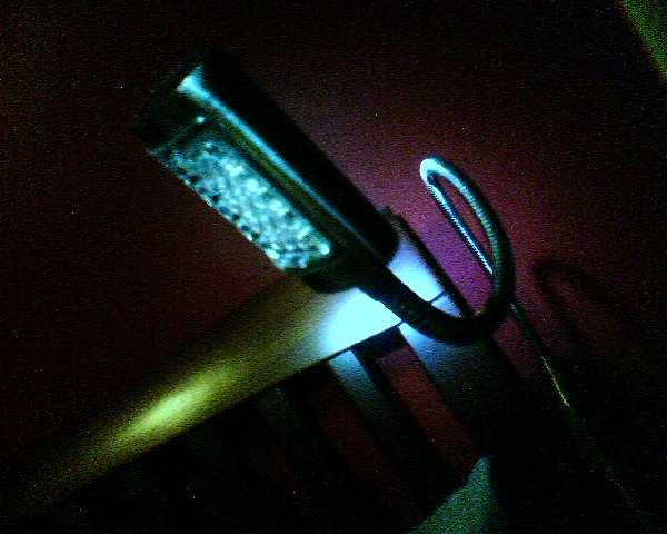 ![]() ![]() ![]() ![]() I've been home in bed from work the last two days with a fever. Pictured is my lovely view of the headboard and ceiling over the bed. I'm better than yesterday, but the Vicks thermometer still reads 100.6 F. If I'm in bed some more tomorrow, I have the 20 LED reading lamp the arrived today from Levenger.com. - mike lee - wheaton, md |