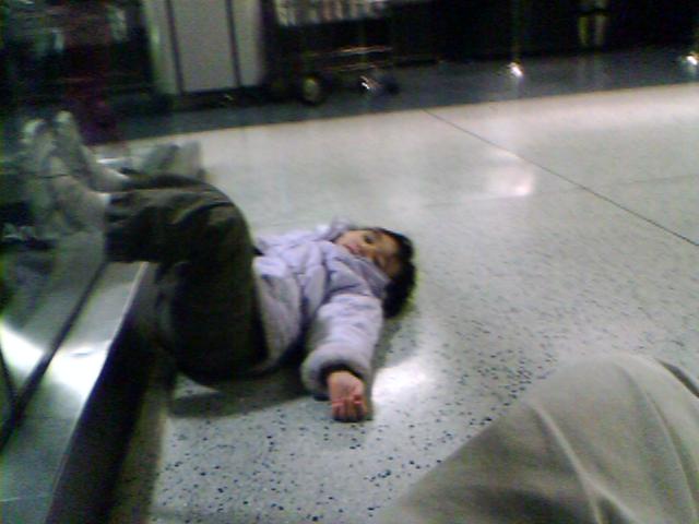 No it's my daughter wiping her coat across the floor of Penn Station in New York City. Cinderella lasted about two hours, and then we went to The Breadstix Cafe for a while. Now we're on the train heading home. - mike lee |