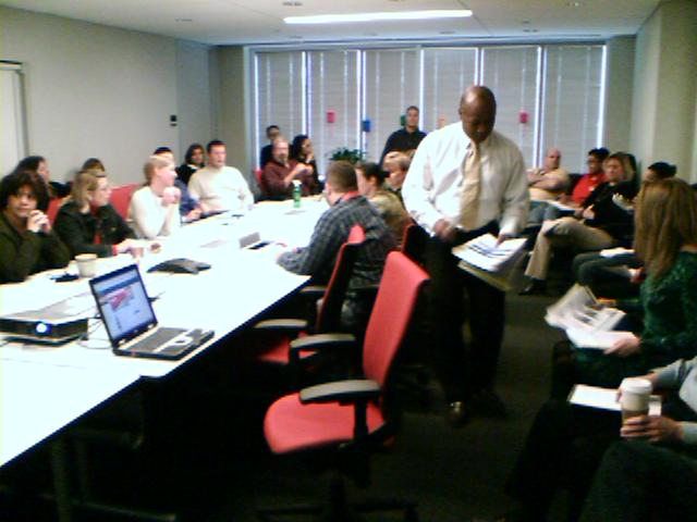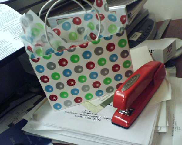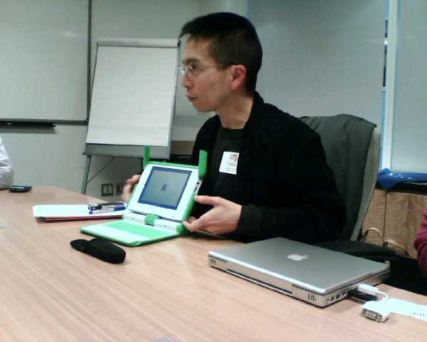 ![]() ![]() ![]() ![]() ![]() Today was ease out day before the start of my vacation tomorrow. Possessed by the spirit of Martha, I gave out candy canes at my team lunch and at the management meeting. But the highlight of the day was Dr. John Maeda's visit. Besides getting a lab update and talking about business, John pulled out the OLPC Children's Machine XO (a.k.a the $100 Laptop) that was recently given to him. I had a couple minutes with it as it was passed around the conference table. It's actually heavier than the mockups I've held before. The dual mode screen was lacking in contrast, but perhaps the device was in a power-saving mode. I managed to take a few closeup photos. It's really only been a few months since we had the wooden model in our offices--quite an achievement to today's working device. After work, we retrieved our holiday girl from daycare. She's pictured here holding the program guide from her class field trip to the White House. No, Dubya wasn't home. - mike lee - washington, dc |