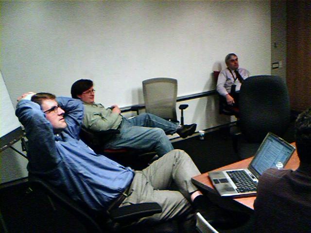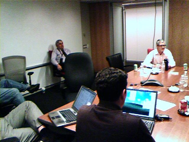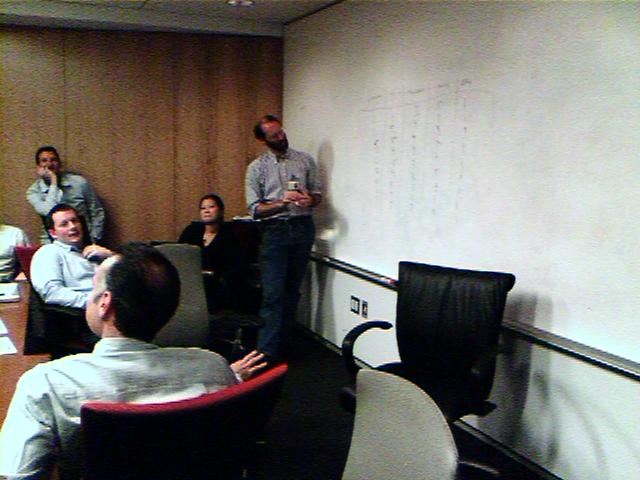 ![]() ![]() ![]() ![]() ![]() Here's the weary group of us after completing 23 hours of vendor presentations on web content management systems over the last seven days. We voted on selecting two finalists out of five to come on site for a week for proof-of-concept testing. Though the winning demos were very slick, we know we face months of expensive and complex detail work to build out whatever system we finally select. All to bring more delight to people who spend a few minutes clicking through our web site, and give content producers a bigger and better bag of tricks. - mike lee - washington, dc |