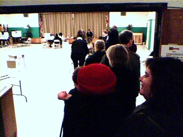 ![]() ![]() ![]() ![]() ![]() We got to our local polling place soon after it opened at 7, and there were only about a dozen people in line. We were done in 15 minutes! There will be a mob this evening, but they'll have to stand out in the cold rain. Now back out into the foggy morning to drop the child off at grandmas, and then head to work. - mike lee - wheaton, md |