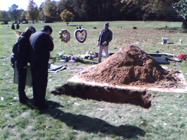 ![]() ![]() ![]() ![]() We stayed to watch the casket lowered into the concrete vault and buried because there was a mistake in the placement of my grandfather's vault. Ground radar showed no casket under my grandfather's brass plaque, but they finally found it so that my grandmother could be placed alongside. They'll move the plaque next week. - mike lee - adelphi, md |