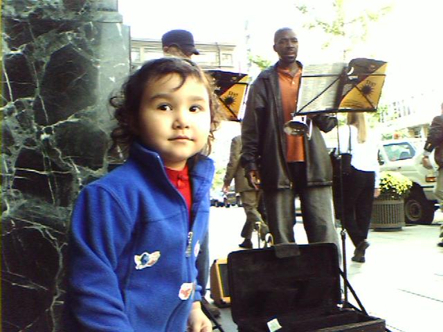 ![]() ![]() ![]() ![]() Cici and I took the Metro train downtown yesterday. A rider gave us a seat, Cici gave her a Finding Nemo reward sticker that said "Great Job!" We noticed a sign in the train car: Escalump (es-ke-lump) n. person who becomes a human speed bump by suddenly stopping at the top or bottom of Metro escalator. And on exiting Metro Center station, we watched two musicians for a few minutes. Cici dropped a dollar in their instrument case. - mike lee - washington, dc |