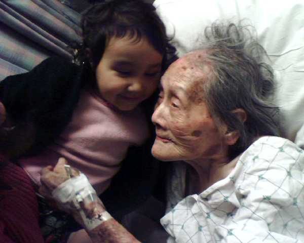 ![]() ![]() ![]() ![]() My 104-year-old grandmother is back in the hospital with an infection in the heels of her feet. She's been immobile for years, and in the last few months has lost the ability to speak clearly. Upon seeing our toddler daughter again last night, grandma managed to say in chinese, "no amount of money..." Which I've heard in full many times before: "no amount of money will buy the joy of having a child." So true. - mike lee - takoma park, md |