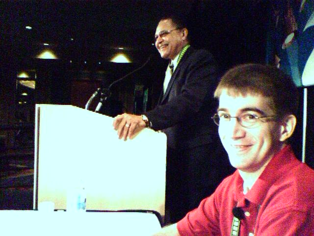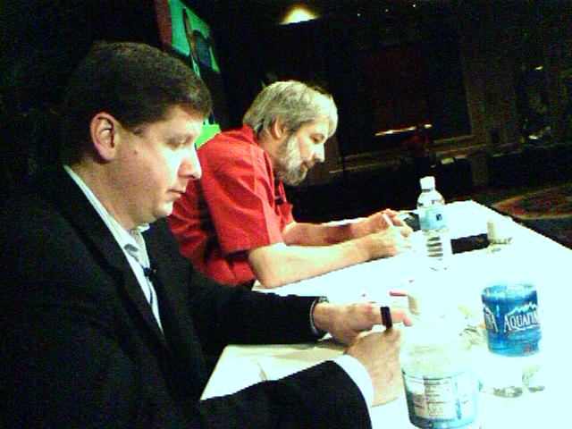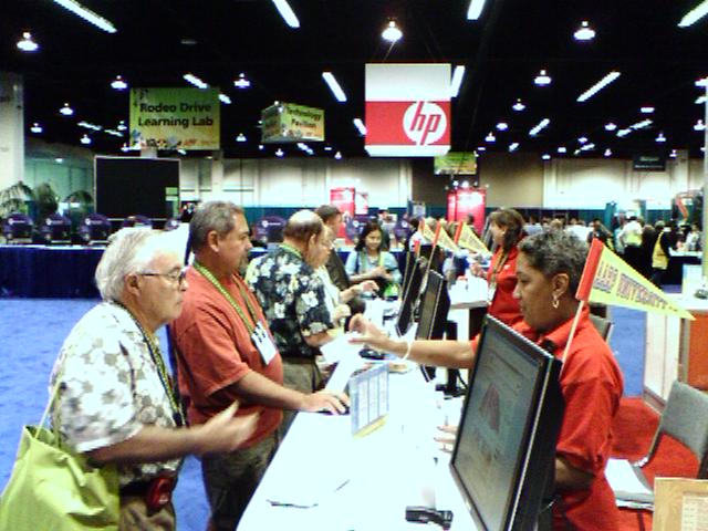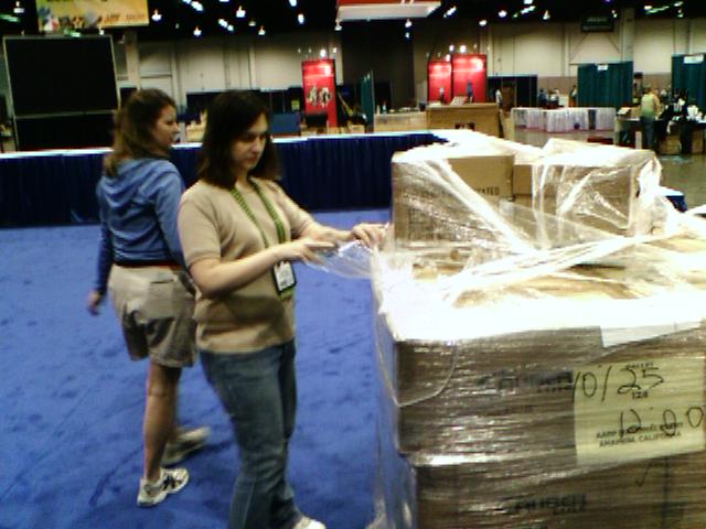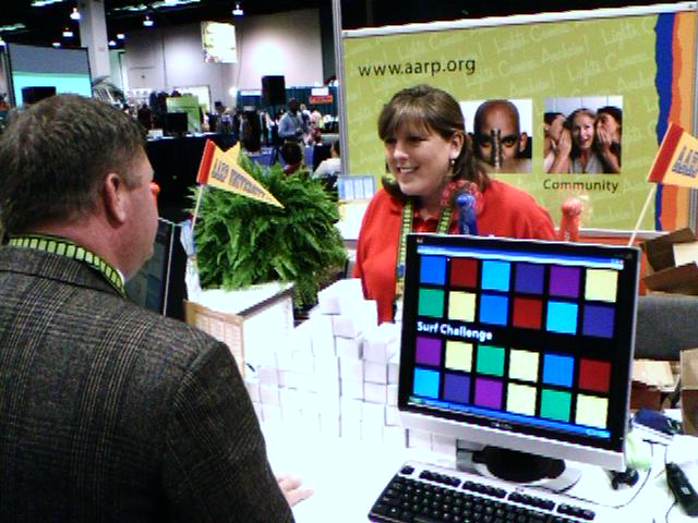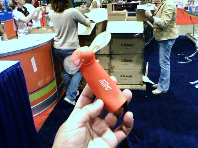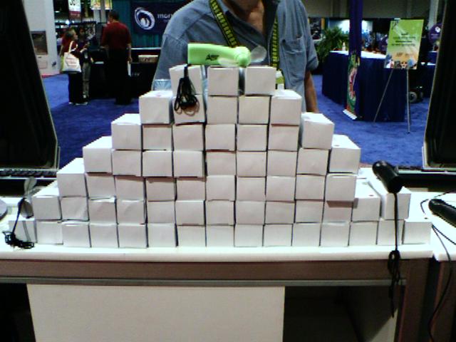![]() ![]() ![]() ![]() ![]() ![]() ![]() ![]() ![]() ![]() Well 12-5pm today was exhibit booth setup time for our team and hundreds of other exhibitors. There were union cable riggers, carpet kickers, and forklifts everywhere. In pic 3-5, you can see the delivery and unpacking of 12,000 battery powered LED message fans at our booth. Pic 6 shows the ever-popular "giant colon" display at one of the health vendor booths in its fully inflated glory. I'm saving a special time for tomorrow to go in and feel the polyps. Pic 9 is the sign over the Nintendo booth where they will have a Wii on display as well as a kiosk of DS units hyping the Brain Age and Brain Academy games. Pic 10 is a closeup of one of the DS units with a custom video out cable that feeds two stacked 15" LCD displays to mirror what's happening on the game screens. Would be cool to be able to buy this... The convention offcially starts tomorrow. - mike lee - anaheim, ca |