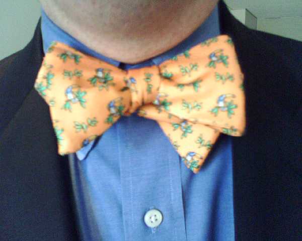 The always engaging Dr. Joe Coughlin of the MIT AgeLab stopped by the office for lunch and to deliver a talk. I was compelled to blog his trademark bowtie, which today was dayglo orange. - mike lee - washington, dc |