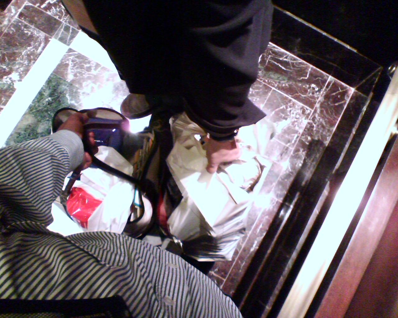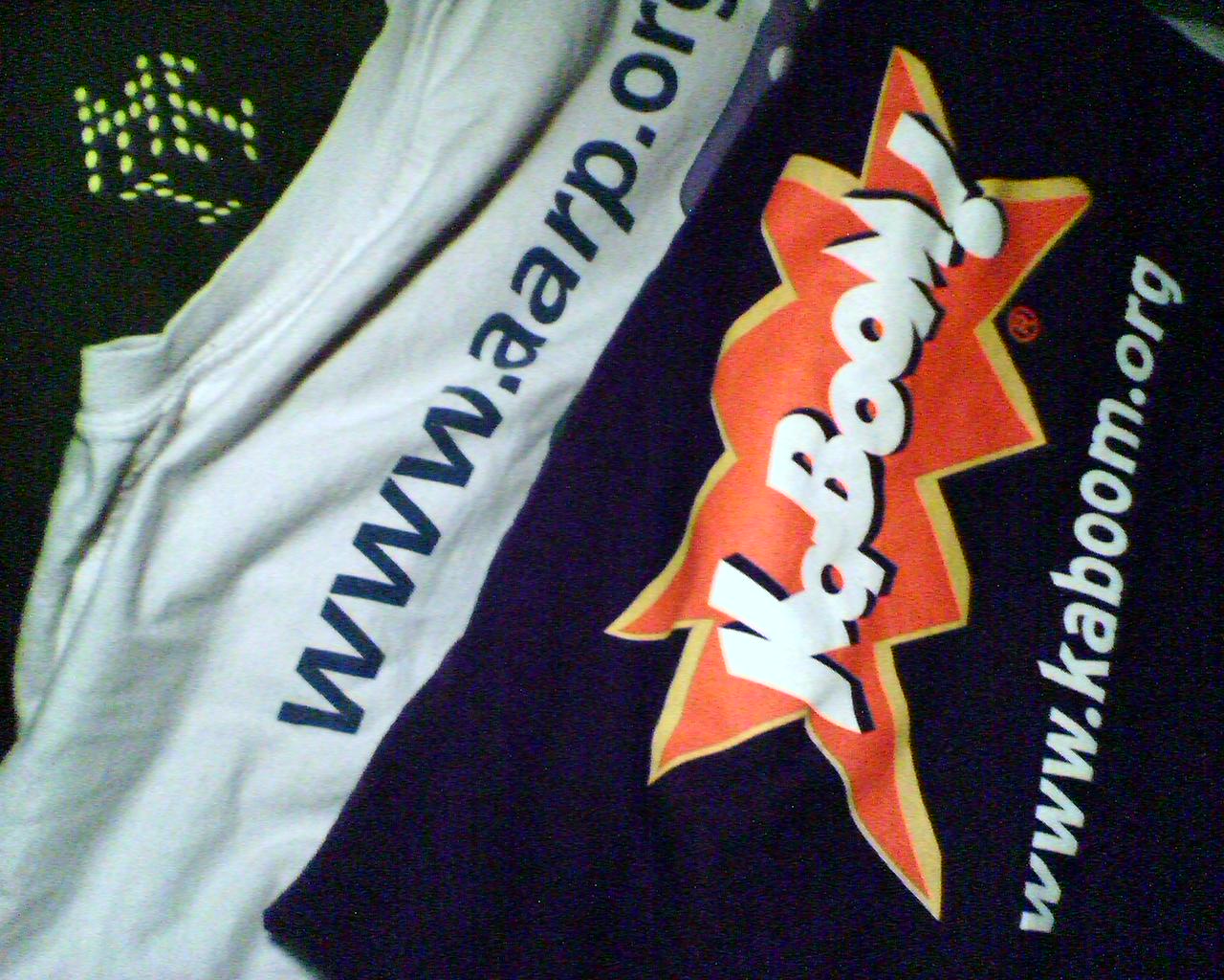 ![]() ![]() ![]() ...from working at the same office. After almost five years at Giant Nonprofit Organization, the last two of which we were directors in the same business unit, my wife is moving on to a new job on Monday. I'm staying on to start the climb up an ambitious mountain of new web initiatives. Today was her last day, and there were the appropriate farewell festivities. The first pic is of us on the top floor of the Chop House with various bosses and staff just off frame. The next pic is of us in the elevator carrying bags of desktop detritous home. The last pic is of yet another logo'd t-shirt appearing in our hamper. - mike lee - washington, dc |
