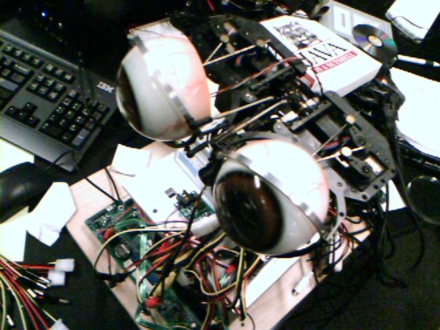 ![]() ![]() ![]() ![]() ...of the Simplicity Research Consortium at the MIT Media Lab. John Maeda is at far right. That's Kevin from J&J in New Jersey projected on the whiteboard via iSight and iChat. Last image is of an early prototype of the eyeball mechanism for Cory Kidd's robot weight loss coach. This afternoon, a group of students and sponsors is taking a walk on Newbury Street to end up at a tapas place for dinner. - mike lee - |