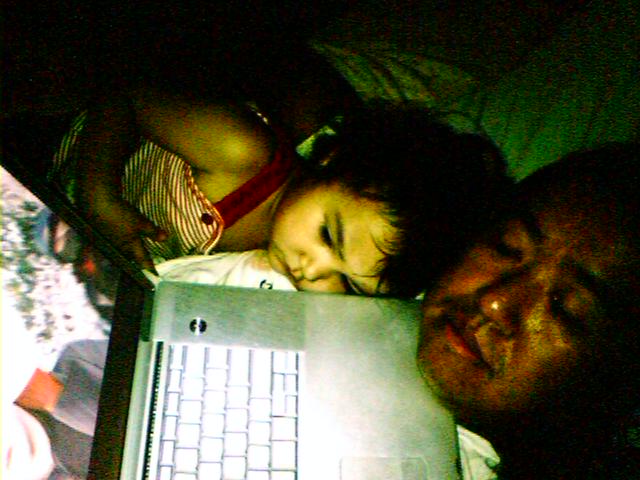 Cianna's daycare center is still closed from drying out from last week's floods. They took her to an alternate facility today, but the break in routine caused her to implode into a 90-minute fit of crying. So we picked her up early. Here she isjoining our management meeting. My boss, who was on speakerphone said, "we need all the help we can get!" - mike lee - washington, dc |