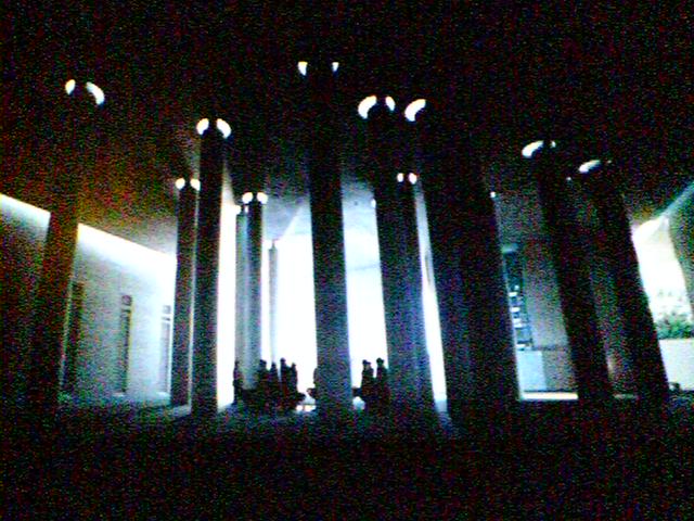 ![]() ![]() ![]() ![]() ![]() ![]() ![]() ![]() ![]() I watched the special featurettes on the new Aeon Flux DVD tonight. There was a segment on the costumes (2-4), which were designed to portray a post-apocalyptic utopian society in the year 2415. A fusion of historic and contemporary styles were used. The fashion designer also described how they pulled colored stockings over the extras' shoes and boots to economically create a fresh appearance (4). Another segment described how futuristic locations (5-7) were used throughout Berlin, including Hitler's aircraft testing windtunnels (5). The last featurette was unique: the set photographer described the contents of his equipment case, and talked about how his still shooting style differs from that of the cinematographer. He has shot publicity stills for 40-50 films. The Nikon D1x was the camera he showed. His favorite lens is the 85mm f/1.4. Because digital SLRs still have mechanical mirrors that make noise, he often has to enclose his camera in a sound muffling foam blimp (9). - mike lee - wheaton, md |