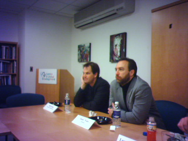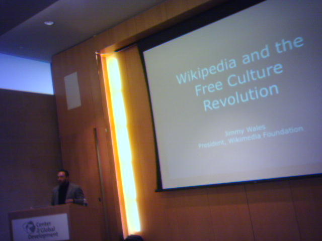 ![]() ![]() ![]() This morning, I went see a talk by Jimmy Wales, President of the non-profit Wikipedia Foundation, and creator of the Wikipedia encyclopedia. The event was produced by Forum One Communications, Center for Global Development, and the Brookings Institution, and held at the Institute for International Economics. Here are my raw thumbtyped notes somewhat cleaned up with links added: * English version of Wikipedia (WP) approaching 1 billion words, 800,000 articles. * 2.5 million articles across primarily 30 languages. * Wikinews is newest of their sister projects that has done a good job of filling in background information around breaking news events such as the London bombings. * Alexa.com says WP has a broader reach that the NYT, LA Times, WSJ, MSNBC, Chicago Tribune COMBINED. * 2.4 billion page views monthly. * WP Foundation has three employees! All the rest is done by volunteers. * Over 120 servers, which are mostly in Florida. Showed WP web server architecture. * Two Models ... Emergent model - needs reputation mechanisms, users are tiny, have no power ("anthill") Community Model - reputation is a natural outgrowth of human interactions, users are powerful and should be respected. * Over half of all edits to English WP are done by O.7% or 615 users! * Realtime peer review model as opposed to gatekeeper model. Tools to track recent changes, watchlists. * Complete page history for almost all articles. * Organization is managed by the community. The software makes no assumptions about how the editing process should work. * WP Governance: confusing but workable mix of concensus, democracy, artistocracy, monarchy; Wikipedians are flexible about social methodology: results over process. * Working on a WSYWYG UI for WP so more experts who not techy can join in. * Fundamental philosophies of neutrality, open inquiry, open debate, free information--it's morally good and ethical to give information to people. * Wikipedia for non- internet users: Affinity to Negroponte's $100 laptop idea as a possible way to deliver the Wikipedia. Supports Brewster Kahle's mobile book project. * JW's upcoming Newsweek article on copyright issues. * WPs attraction is its very low barrier to entry (software and community norms) to build a common ground for a group of practitioners. * WPF is pretty swamped at their org level. * SocialText building WIKIWYG UI, which should be ready for wide release in January. Will be giving this component away. It will be the default UI for MediaWIKI. * WPF has early plans to open their API. KDE adding native calls to WP. Problem with open API is cost to dynamically render pages and bandwidth required to deliver content that then is embedded by non-supporting sites in their own pages. After the talk, I was invited by Forum One to join a private lunch discussion with Jimmy and about 20 others (pic 2 above shows Jim Cashel of Forum One on left with Jimmy at the lunch). Most of what Jimmy talked about can be heard on a 58-minute C-SPAN Q&A interview podcast. - mike lee - washington, dc |
