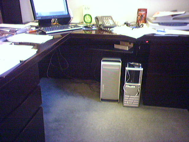 ![]() ![]() ![]() ![]() ![]() ![]() ![]() ![]() ![]() I think there was one other day this year that I had a clear Outlook calendar. It was a good day to catch up on e-mails and memo writing. The cancellation of our National Event, which would have been held now in New Orleans, changed the plans of hundreds of my co-workers who, like me, would have been working at the convention center. Hurricane Katrina swept all of our plans away. Friday seemed like a low key day around the building--like a hurricane's eye of calm passing through the swirl of activity of these busy months at the office. Besides the thousands of tasks required to undo the several days of programming, exhibits, and entertainment that were to take place in the convention center and hotels, there was dealing with the truckloads of swag that would have been given away to the 25,000 attendees. Things like t-shirts and totebags that could be of use to the evacuees were donated. Then there were the tens of thousands of party beads, hurricane cups and feathered masks to support the Mardi Gras theme. Rather than attempt to give all that stuff away, the events team sold packs of these things for $3 each to staff to raise more money to donate to relief efforts. I bought a bunch of stuff to take home to Cianna. After lunch at Fuddruckers at the corner of 7th & H in Chinatown, I visited the new Wall Mounted Display (WMD) in our tech group's area. WMD is a 20" iMac G5 that can display realtime web traffic stats for our site, and virtually anything else we can capture over the network and render to the screen. For the subway ride home, I readied my current nano kit consisting of Mini Cable Turtle, iPod sock, and Smartwrap. - mike lee - washington, dc |