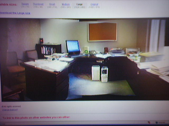 ![]() ![]() ![]() ![]() ![]() ![]() ![]() ![]() If you haven't tried it yet, AutoStitch is a free Windows-based utility from the University of British Columbia that automatically stitches together overlapping mosaic frames to make panoramas. Shown here are six hiptop pix of my office shot with 20-50% overlap. I just pointed AutoStitch at the folder of downloaded images on my hard drive and the app munched on them in about a minute to make the resulting panorama (shown small in last frame here, link goes to Flickr page). The app can work with images that are not horizontal, uneven in exposure, and sort around other random pix mixed in the set. It works very well with any digital camera images. Here's info on the research behind AutoStitch, and a heap of examples on Flickr. Enjoy! - mike lee - wheaton, md |