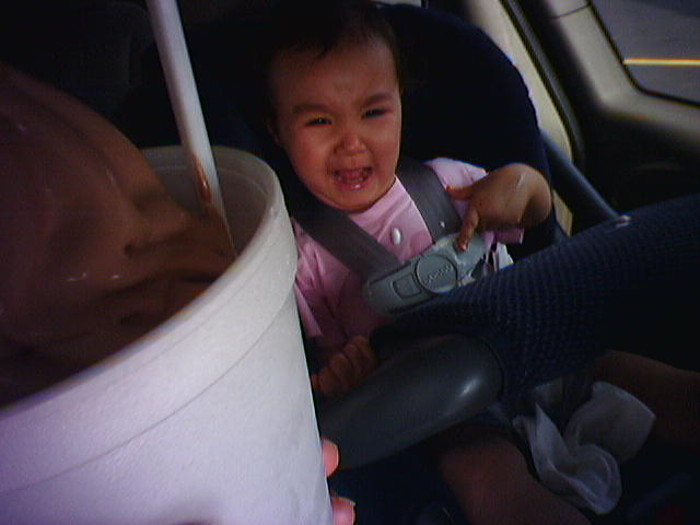 ![]() ![]() ![]() ![]() ![]() Cianna's grandpa took us out to the Dairy Barn for shakes and soft serve ice cream. Cianna got a 1/2 small size vanilla shake and promptly popped the top, spilling a lot of it on herself and the car seat. She alternated between crying from the cold stuff in her lap and laughing while sucking down the remains of her treat (3 & 4). Emotional ups and downs still net out to a good time for baby because she got ice cream in her belly. - mike lee - greenville, ohio |