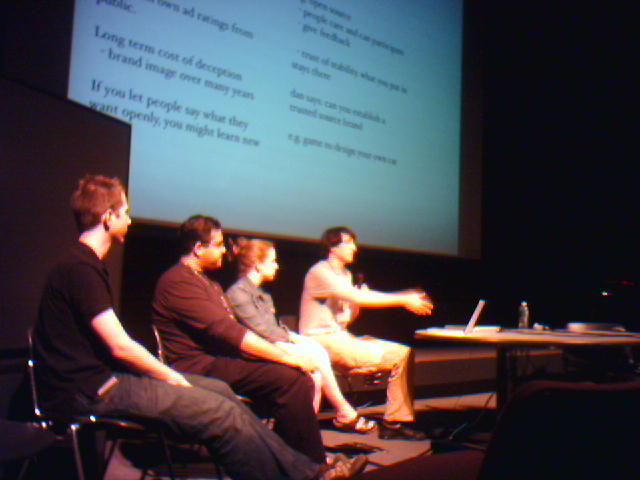 ![]() ![]() ![]() ![]() ![]() ![]() ![]() I met up with co-workers Janice and Kathy early Friday morning so that I could take them to see the Frank Gehry-designed Stata Center (1). We entered the [Bill] Gates wing and walked around the ground floor. Then back outside and around to the top of the amphitheater to look at the wacky metal clad geometric solids at the core of the building (2). A short walk from the Stata brought us to the lab, where we grabbed breakfast before John started the day's program (3). Lab sponsors presented products or visions of the future and three student panels prepared critiques of the sponsor talks during lunch. Pictured here is one of the student panels led by Ben Dalton (4), and John listening from the front row (5). Two things that we particularly interesting to me were Tod Machover's work at Tewksbury State Hospital is using music to help Alzheimers patients retrieve their memories, and Chris Csikszentmihályi's screenings of hilarious advertising videos of the 50s available free from the Prelinger Archives. After the workshop program, we got an impromptu tour of the lab from Sarah Page, who among other areas, took us to the Robotic Life Group to see Leonardo, the sociable robot (6) and some huggables. We had to end the tour quickly to catch a taxi to the airport, and we were lucky that there wasn't any bad traffic or bad weather--we had an easy flight home (7). - mike lee - wheaton, md |
