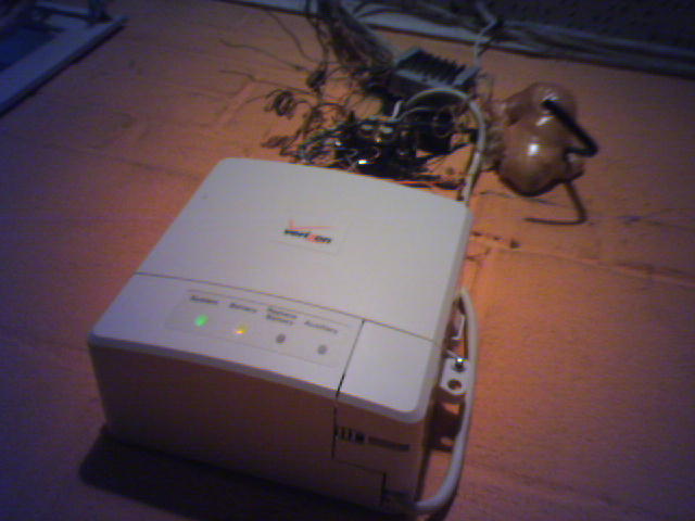 ![]() ![]() ![]() ![]() ![]() ![]() After ten years of hearing about "the last mile" and "fiber to the curb," Verizon arrived at our new house today to install FiOS high-speed internet. Now we have an optical fiber (1) coming off the telephone pole on our street directly to the side of our house into an Optical Network Terminal (ONT, picture 2) to bring us 15 megabit download speed. The ONT also processes our voice calls. Not even running under optimal conditions, I can now pull down a 10 megabyte file in 1 minute! The tech also installed a Battery Backup Unit (3) and Power Supply Unit (4) inside the house in the basement. Unlike standard phone service, which is self-powered, FiOS requires AC to power the ONT, and if the power goes out, the Battery will keep phone service up for another 8 hours. A standatd CAT5 cable comes in from the ONT through another hole in the wall to our office terminating in an ethernet jack (5). Then a patch cord goes from there to a D-Link router (6), which has a hub to connect to our desktop and laptop computers. Now I have to figure out how to make use of our wireless router or upgrade to Verizon's wireless D-Link. We may achieve nirvana later this year when Verizon begins to offer cable TV through this system to compete with Comcast. Then Comcast will get a big f-you from us as we cancel the service we don't even have yet after three botched appointments. - mike lee - wheaton, md |