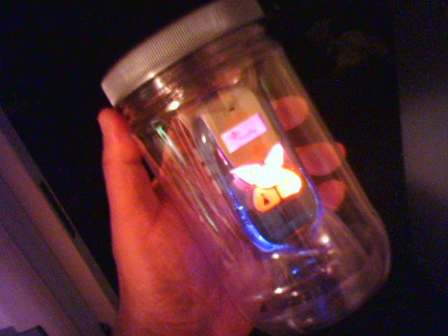 ![]() ![]() ![]() ![]() ![]() Amy's sisters came to visit our new house for the first time, so we fired up a Weber for the first cookout on our deck. We had a selection of salads from eatzi's deli along with burgers and dogs from the grill. Both Aunties work professionally at an architecture and interior design firm, so we got a load of good ideas for decorating the house. In the last photo, it may appear as if I caught a firefly tonight, but it's actually store bought. While shopping for home stuff at Target this afternoon, I saw the new display for Firefly mobile phones for kids 8-12 years old. I decided to buy one to see if my 73-year-old mother will use it. Unlike normal cell phones, which my mom won't use because she thinks they are all too complicated, the Firefly phone only has five buttons, and I will configure it so she can call my brother or me from the "mommy" and "daddy" speed dial buttons. For $99, the phone comes with a Cingular SIM and 30 minutes of talk time. More time, at 25 cents a minute can be bought at Target as $25, $50, or $75 cards which are activated at the cash register. The Firefly is pictured here running its animated lights in its creative plastic jar packaging. - mike lee - wheaton, md |