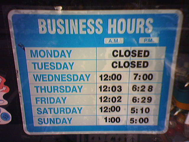 ![]() ![]() ![]() ![]() After working a little late at work tonight, I took the subway home back to my local stop. Tonight was the first time doing the mile walk from station to house. Along the way, I discovered that the Barbarian, a comic book store I used to haunt back in high school (over 25 years ago!), is still in business (1), but keeping funky hours (2). I also stopped by the public library to grab some library card forms and verified that they have free wifi. I was drenched in sweat by the time I got to the house, and today wasn't extremely hot. I'm not sure how committed I'll be to walking when it's 95+ degrees out. Wife Amy stayed home today to take delivery of our new king-sized bed (3), which will feel damn good to collapse into shortly. And despite repeated calls, Comcast Cable never showed up for their appointment today. Typical. Amy also found my Kyocera Digital camera (4), which got packed up with some clothes for the last two months. - mike lee - wheaton, md |