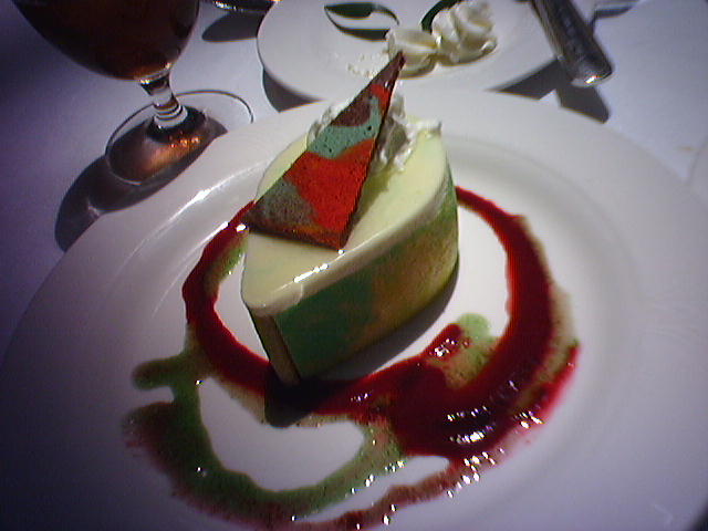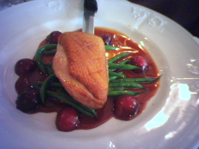 ![]() ![]() ![]() ![]() ![]() ![]() ![]() Petit Louis was the french restaurant where we celebrated the sale of our house. Chef Cindy Wolf offered us her tribute to the first fruits of summer with the June Cherry Festival four course dinner. First course, Soupe aux Cerises (1), was a refreshing and sweet soup of pureed chilled bing cherries, plum and nectarines. Wine offered: 5oz. of a bubbly Vouvray, Fouuet NV. Pommes frites then appeared as a finger food (2). The second course arrived in the form of a tangy Salad de Frisée, (3) Frisée with red wine vinaigrette, oranges, walnuts and goat's cheese toasts. Poîtrine de Canard (4) was the main course of pan-seared duck breast with haricots verts, bing cherry and port wine sauce. Wine offerd was 5oz. of Cabernet/Syrah, Mas de Guiot 2003. Dessert breezed in as Clafoutis (5) cherry custard cake with bing cherry topped with a scoop of vanilla ice cream. Wine was 2oz. of sweet Jardin Hiver 2003. After cappuccino (6), we left (7) with a satisfied glow and wallet acceptably lighter. - mike lee - baltimore |