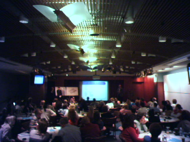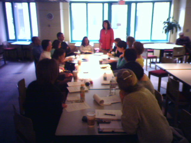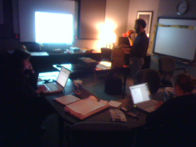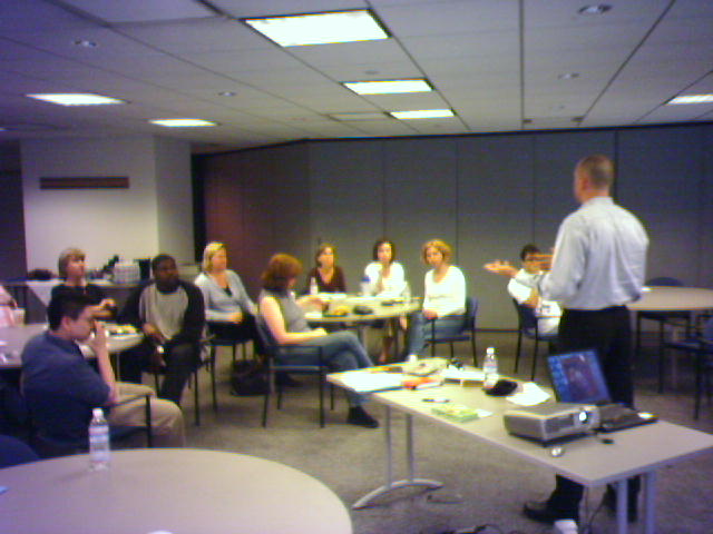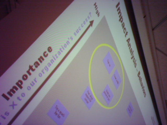 ![]() ![]() ![]() ![]() ![]() ![]() ![]() Today was a busy day full of presentations. First thing in the morning, I introduced Dr. BJ Fogg's talk to a group from our Office of Social Impact. BJ presented (1) a version of his introductory talk on persuasive technologies. An hour into BJ's talk, I ran downstairs to catch our all-staff meeting in progress (2) just as our building architects began their presentation of the initial designs (3) of our new office space. Then, after the all-staff, I was back up to the first room to situate BJ for a Lunch 'n Learn talk to some of our web team and other guests (4). BJ did a shorter primer on persuasive technologies where he showed examples of persuasive web sites and products such as the SportBrain pedometer (5). To demonstrate the theory of operant conditioning, he used a clicker to direct a volunteer from the audience who had left the room so that the group could pick a goal. The volunteer came back in the room, and reacting to well-timed positive reinforcement cues in the form of sounds from the clicker, eventually figured out the secret goal, which was to hug a stuffed animal. A fuller version of the clicker technique, which is used for training dogs, is described in the bestselling book Don't Shoot The Dog. After Lunch 'n Learn, a small group re-convened (6) for a workshop on using impact analysis (7) to prioritize the building of web site functionality against business goals. BJ's technique involves, among other things, card sorting, and the use of a feature prioritization matrix. After sending BJ back to his hotel room for a rest, Amy and I met him at Legal Seafoods to discuss the day over dinner. I must say, this is the most intensive involvement I've had from a visiting speaker ever. Bravo Dr. BJ Fogg! - mike lee - washington, dc |