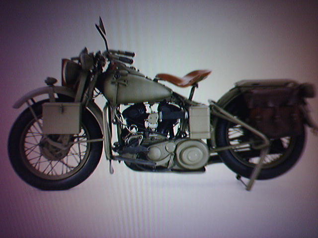 The bike in my last post (13071), turned out to be a Harley-Davidson WLA 1942 Military. About 90,000 produced during WWII. Though the bike embodied the ultimate in simplicity and reliability, the Jeep became the armed forces' utility vehicle of choice. Franlin Mint offers a nice scale model. - mike lee - baltimore |