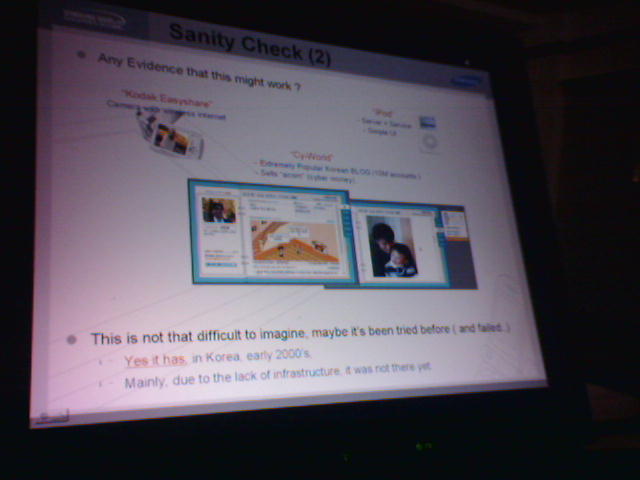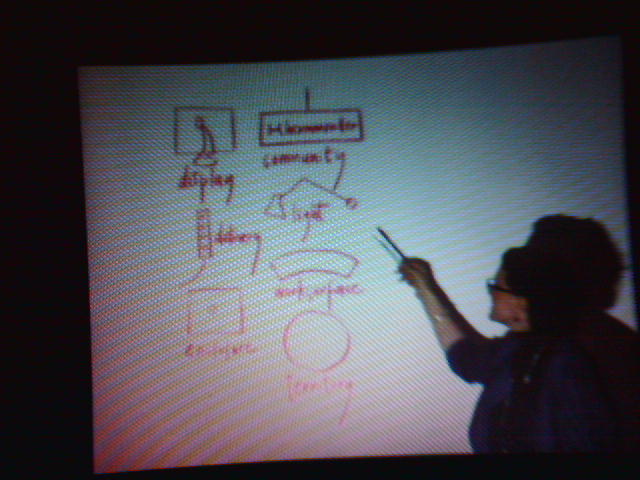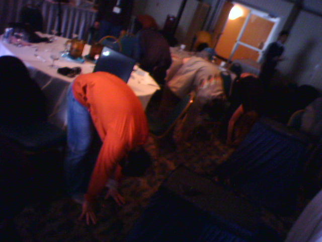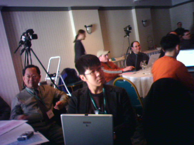 ![]() ![]() ![]() ![]() ![]() ![]() Several sponsors gave sponsor perspectives talks. People are excited about Cyworld (1), a blogging community in Korea that has attracted 13 million users. Kelly Dobson introduced Gemma Schusterman's "Faunacise" chair exercise video (2 & 3). And now, Chris C. is leading a group to build kites (4) to fly on the beach. One of the kites will have a wireless video camera (5). I'm wearing John's logo'd conference t-shirt (6). - mike lee - cape cod |