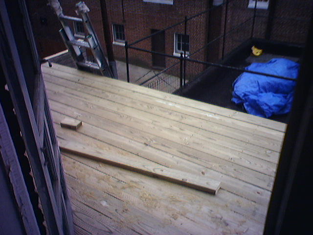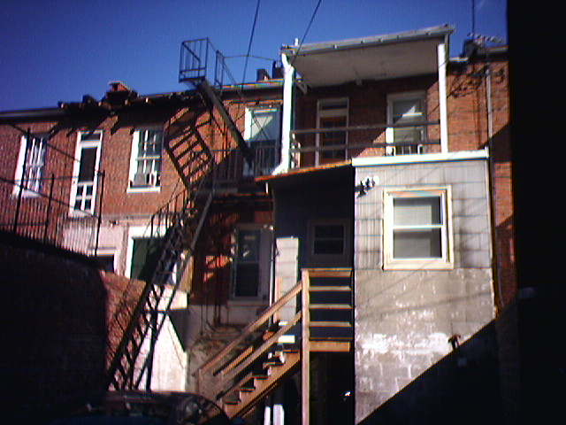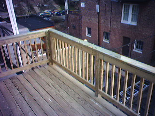 ![]() ![]() ![]() ![]() The first photo shows the contractor's progress on our back deck at the end of the yesterday. The surface of the first floor porch and the frame for the second floor deck were completed. Today, the workmen covered the second floor deck and added railings. The back of the house looks 100% better. - mike lee - baltimore |