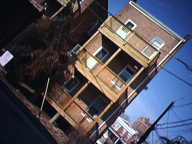 ![]() ![]() ![]() ![]() ![]() ![]() This is my first day back at our Baltimore house in two weeks. The contractor has already removed our old natty back porch and sun room (left of pic 1, old one looked like our neighbor's at right). The porch will be replaced by a wooden deck (like in pic 2). With the back of the house fixed up, we should be ready to move in the srping. To get away from all the hammering out back, we're spending the morning out at Cafe Hon (3 & 4) and elsewhere in Hampden (5 & 6). - mike lee - baltimore, md |