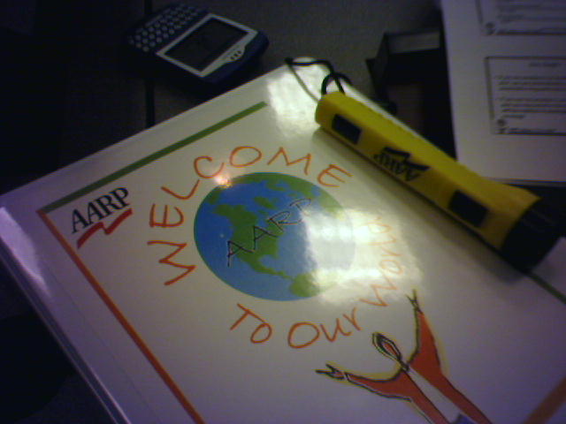 ![]() ![]() ![]() ![]() I'm in the corporate learning center with seven other new employees this morning to hear detailed briefings on the history of the company, profiles of leadership, policies and procedures, benefits (which are extensive), etc. A relatively new 12-minute video overview was shown with a funny clip from 1998 showing Jay Leno calling the AARP call center to register Mick Jagger as a member. We have lunch with the Chief People Officer coming up along with a tour of the building. Note the yellow "security" flashlight...they start loading you up on company tchochkes on the first day! In the coming months, I have to go to a day of diversity training, participate in a day of public service and attend a more comprehensive three day new employee orientation. I also know I have a management conference and divisional new employee orientation. Call it immersive orientation! - mike lee - washington, dc |