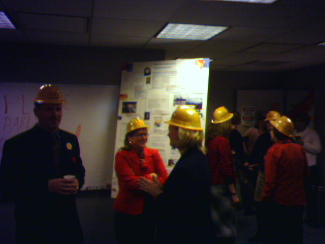 ![]() ![]() ![]() ![]() ![]() The Hard Hat Tour of our web-site-in-progress went very well this morning. We converted our meeting room and the area around into a mock contruction zone with a bunch of decorations, including orange cones with blinky lights. These few pics don't really capture the extent of all the "stuff" that was put out for display. From 9:30-10, my boss, our division president and our chief communication officer thanked members of our web team for the hard work they are putting in in the final weeks before the re-launch. Then for another hour, a stream of people from around the building came in to see the displays and sample the cake, which said, "Please Pardon Our Pixels While We Renovate." All visitors got personalized hard hats with the project logo and their first name. I didn't get any photos of the crowd because I chatted with visitors the whole time. All-in-all, the event was a great success thanks to lots of good prep work by the team. - mike lee - washington, dc |