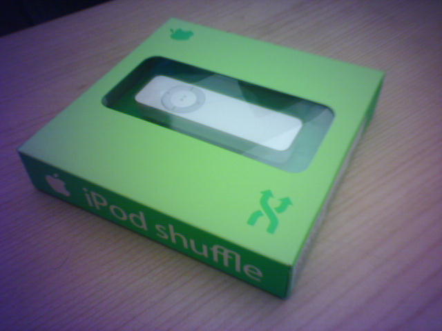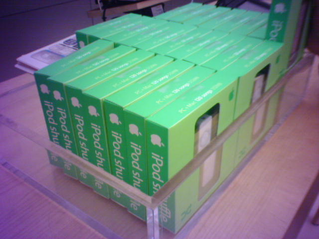 ![]() ![]() ![]() ![]() By chance, I wandered into the small Apple store in Bethesda, Maryland just now and discovered that they got some of the still hard-to-find 1 gig iPod Shuffles in a few hours ago. I'm still very happy with my mini, so I bought one for my wife. She's still using a first generation iPod and will appreciate wearing this little pick-me-up. - mike lee - |