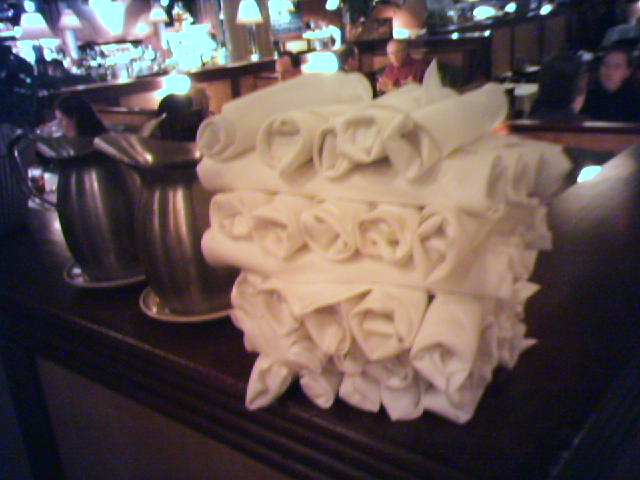 ![]() ![]() ![]() ![]() These are scenes from the District Chop House, where we had lunch today. 1) Napkin roll "sculpture" 2) Free corn bread 3) Chaulkboard of brews 4) A fermentation vessel. - mike lee - washington, dc |