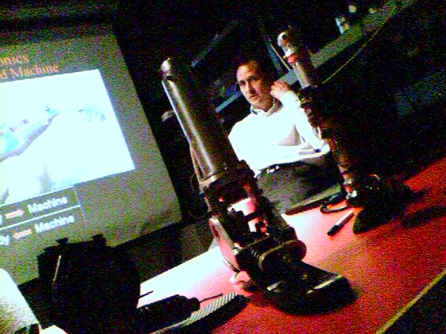 ![]() ![]() ![]() ![]() ![]() ![]() Where my visit to the Media Lab earlier this month closed the loop on conversations started 14 months ago, today's visit was to set a firm stage for the future. Our CIO and my boss are the executive sponsors of our relationship of the lab and they were here today to kick off conversation on research collaborations. Pictured here are some snaps from our tour. We started the morning with a quick visit to the One Laptop per Child Foundation to check in on their progress. SJ Klein answered our questions and demoed the latest hardware. Cory Kidd in the Robotic Life group is a week away from placing his diet coach robots into homes for field trials. I'm mugging with Jack Driscoll, Editor-in-residence at Media Lab and founder of the Silver Stringers, a group of senior citizen journalists that has been publishing an online newspaper for 11 years. Hugh Herr gave us another overview of his human augmentation work in the biomechatronics lab. He described the next version of his powered prosthetic ankle. Some of Tod Machover's students demonstrated their research in advanced digital musical instruments. Shown here are two of his classic instruments for kids. After many thank yous and with pages of notes and lists of action items my colleagues headed their separate ways. I taxied back alone to the airport to catch my Delta Connection Comair CJ150. More photos on Flickr. - mike lee - cambridge, ma |